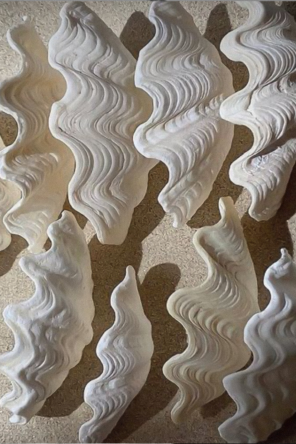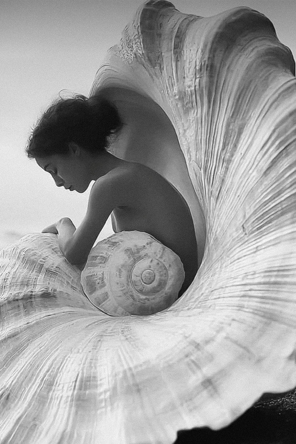 La paleta de colores es suave y orgánica, y abarca desde los blancos deslumbrantes que imitan la espuma de las olas del océano hasta los distintos tonos de azul que aluden a las profundidades y la claridad del agua; todo ello se complementa con el verde salvia que aporta el aspecto vivo dentro del océano y los rosas ruborizados que están relacionados con la puesta de sol y el reflejo que da en la superficie brillante.