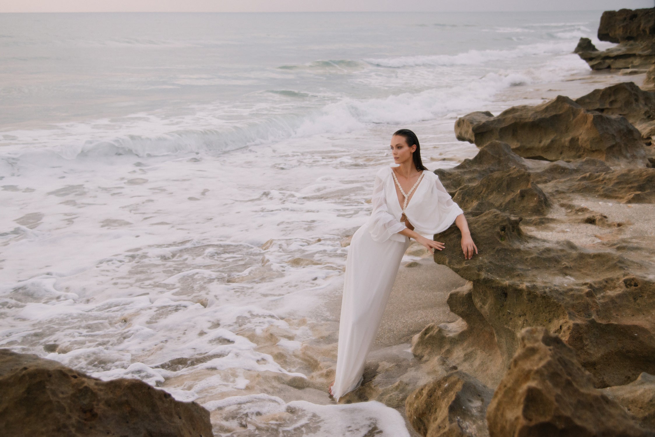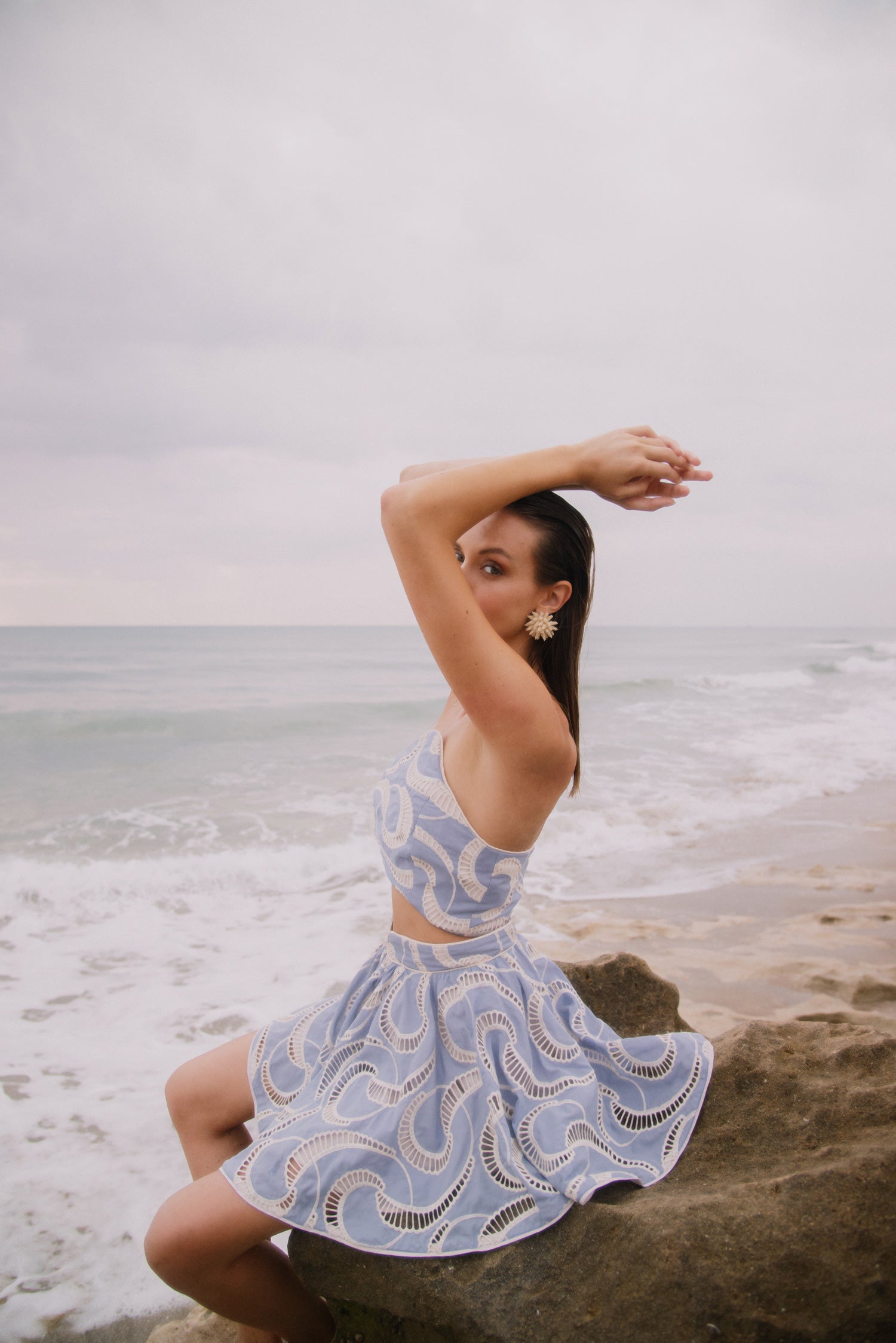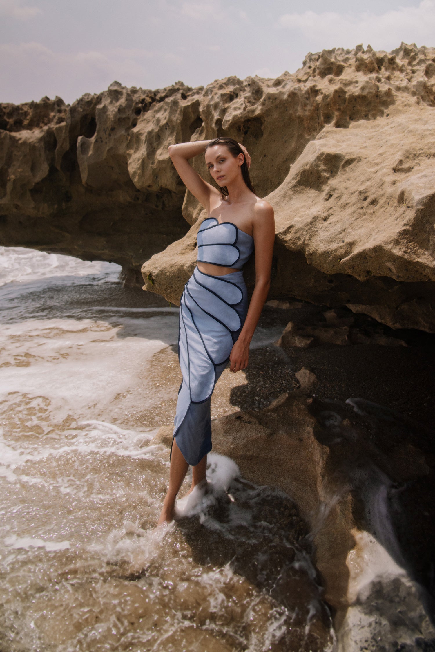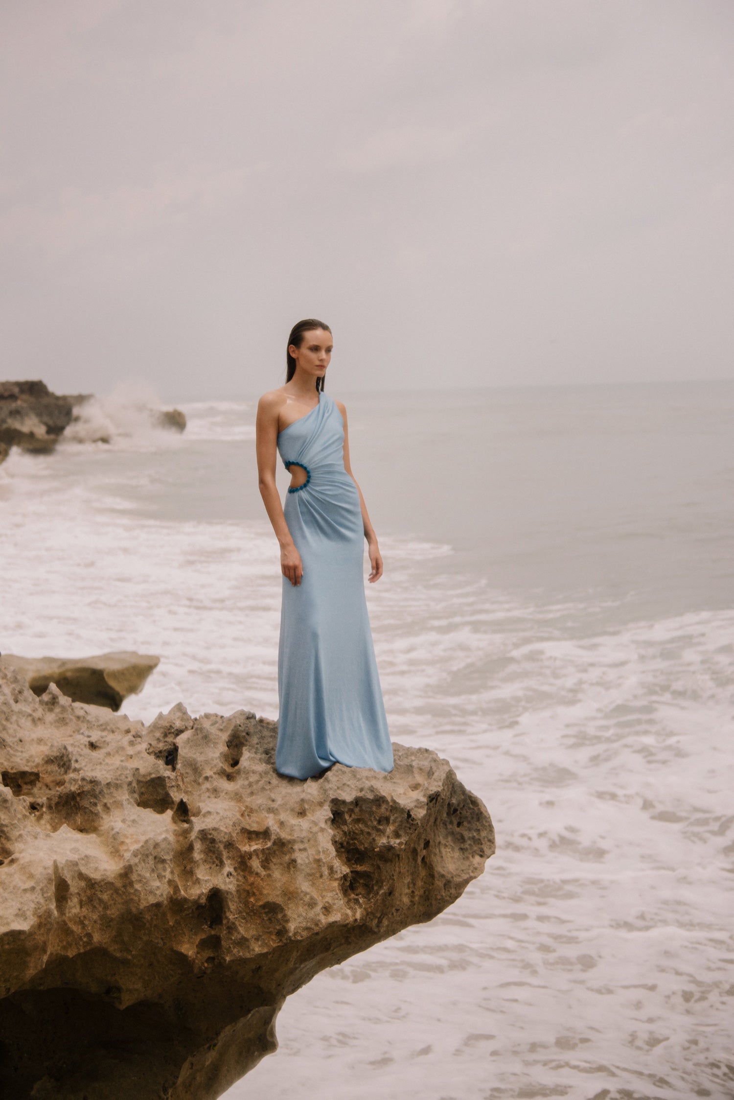 La inspiración para Azulu Resort '25 proviene de la hipnotizante danza de los mares... Como marca, fundada en la isla de San Andrés, en el Caribe colombiano, siempre hemos tenido una estrecha relación con el océano, por lo que, con mucha frecuencia, y especialmente para las colecciones Resort, tendemos a volver a él. El nombre de esta colección es Nami, que significa ola en japonés, en homenaje a otra cultura isleña que tiene una conexión significativa con el mar, entretejida en toda su cultura y tradiciones. Muchas de las formas de la colección se inspiran en los movimientos de la superficie del océano... Las olas son pasajeras, pero siempre están ahí, subiendo y bajando. Dispersan la luz y el tono del agua cambia constantemente, pero siempre resulta familiar.